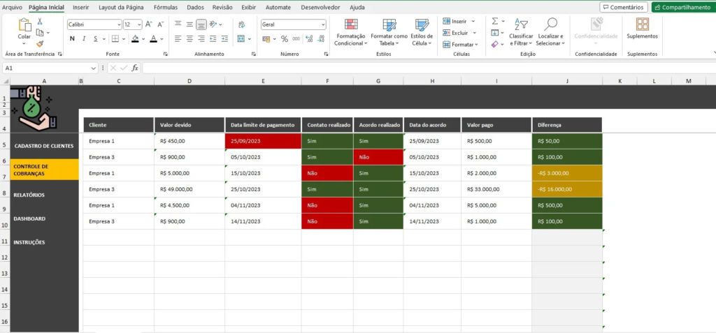 Uma planilha completa deve incluir funcionalidades que facilitem a gestão e o monitoramento das cobranças. Veja as principais: