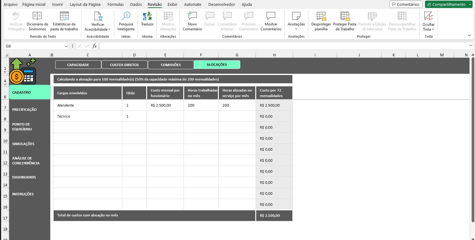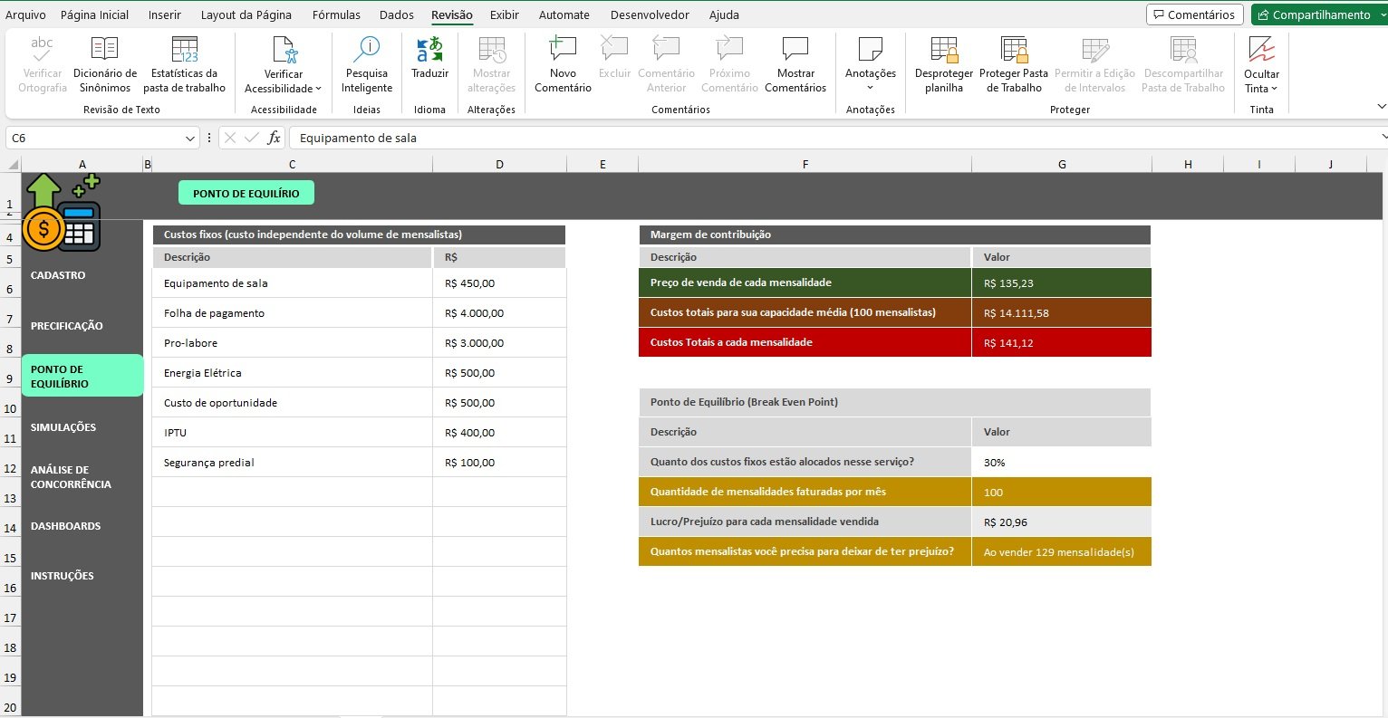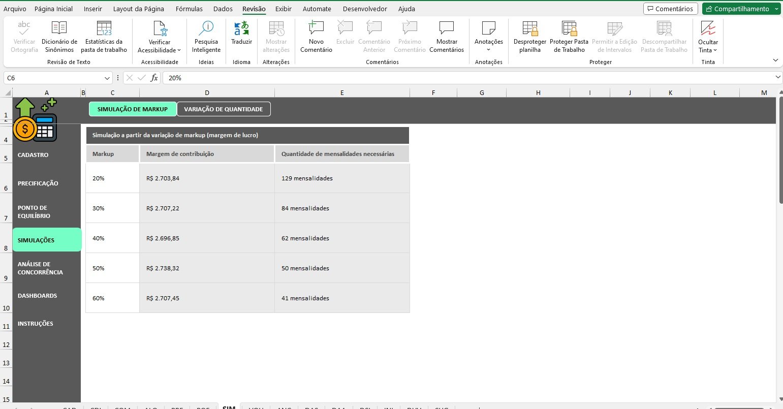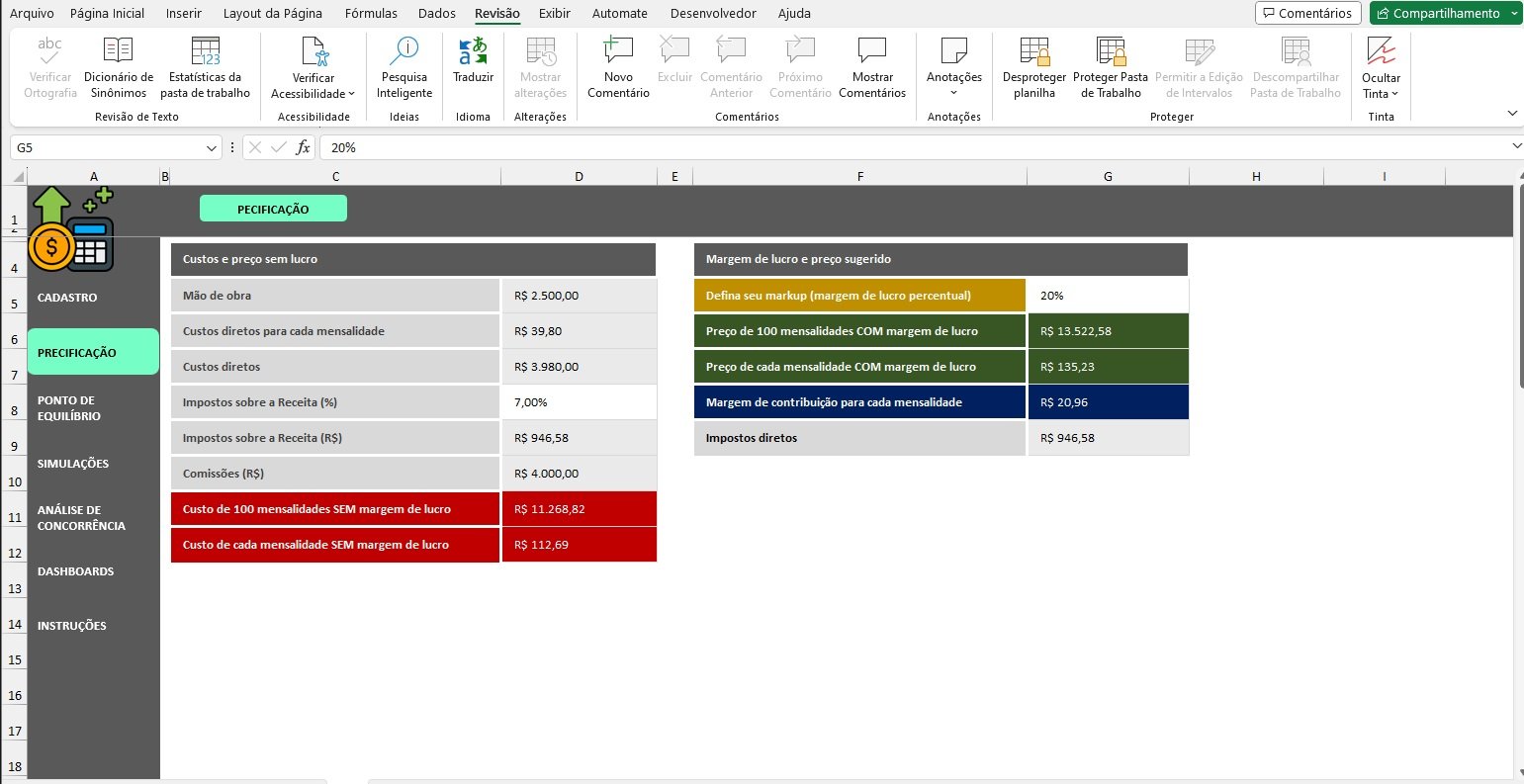 Planilha para Precificação e Análise de Mensalidade em Excel
